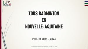 Projet : Tous Badminton en Nouvelle-Aquitaine L'intégralité du Projet de la Ligue 2021-2024 Cliquez ici Projet Ligue 2021-2024 résumé : Cliquer sur l’image